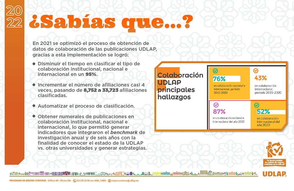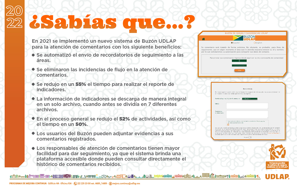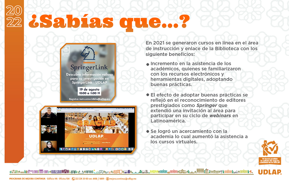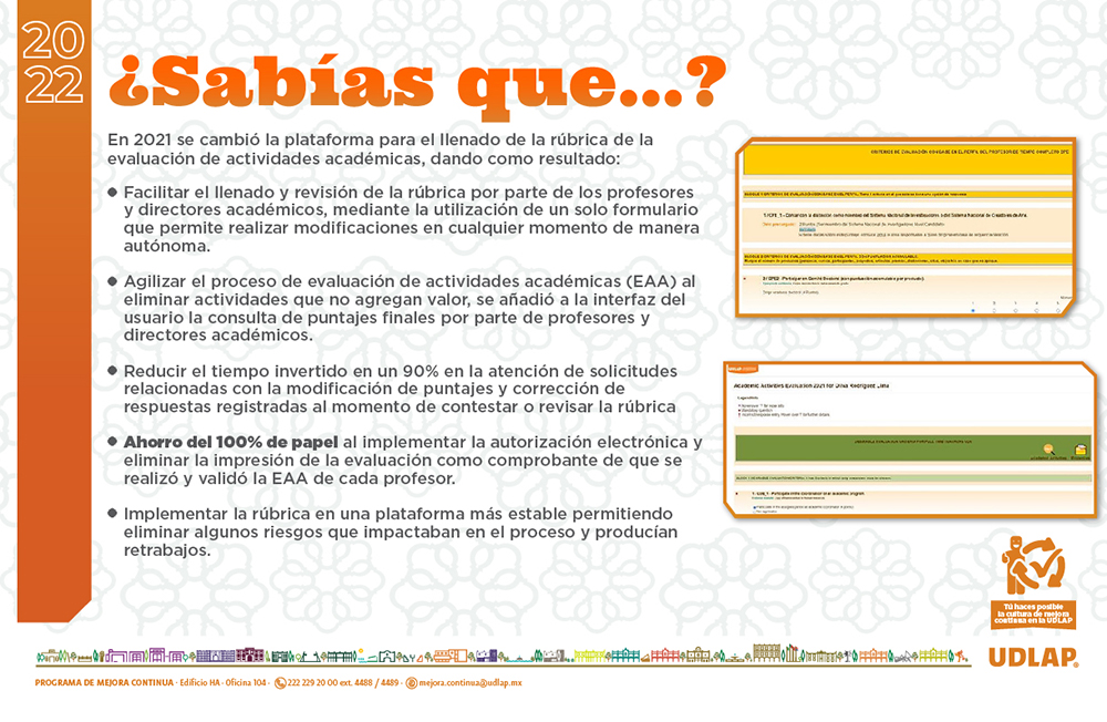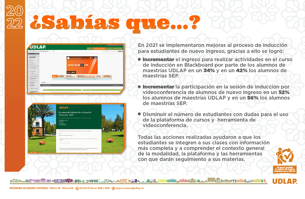 El Programa de Mejora Continua (PMC) UDLAP 2021 se liberó el día 1 de febrero de 2021.