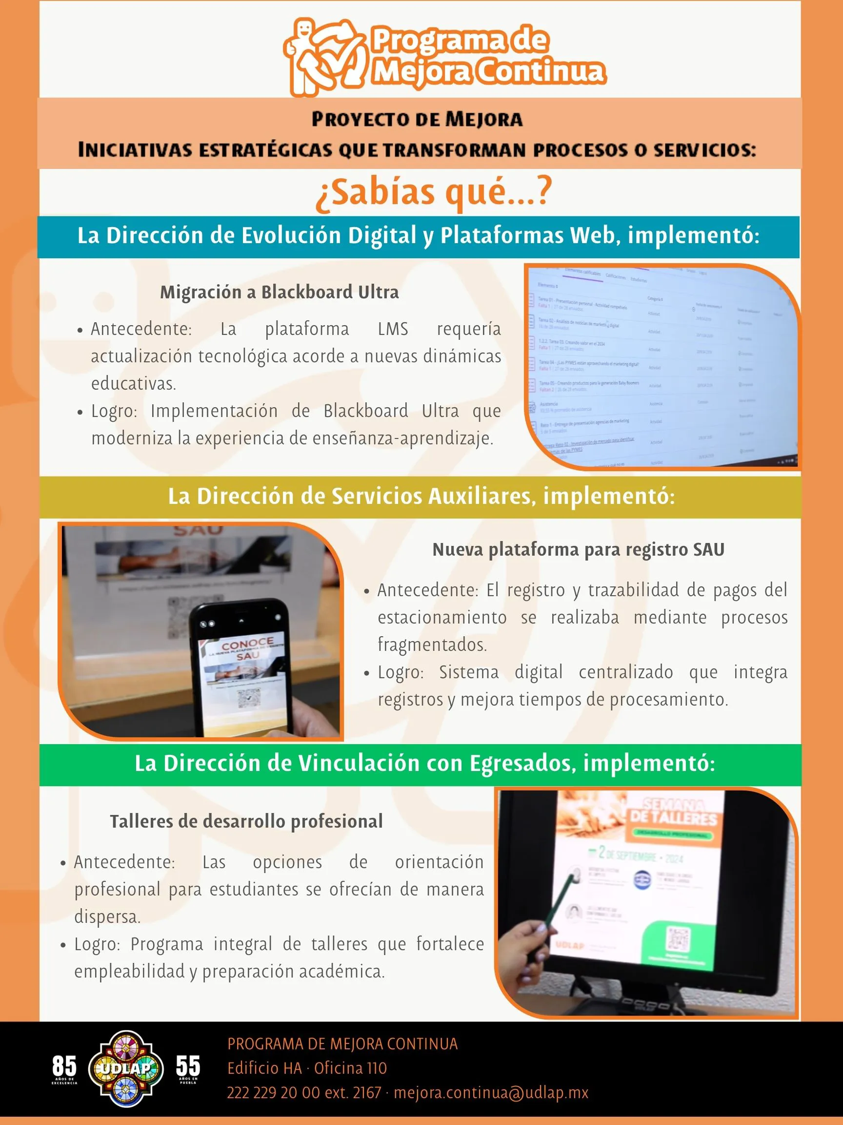 El Programa de Mejora Continua (PMC) UDLAP 2024 se liberó el día 6 de febrero de 2024.